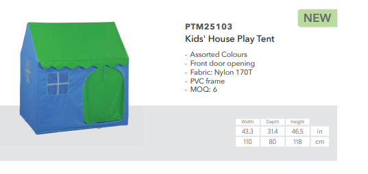 Kids' Nylon House Play tent with pvc frame. Front door opening.