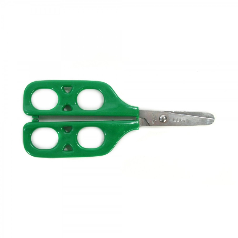Developed, under consultation with Occupational Therapists, to assist the child who has poor visual motor coordination; lacks the strength to complete a cutting action; has a tremor and cannot place the scissors at a given starting point; has poor background/foreground differentiation. Ideal for learning the opening / closing action of scissor skills. The child places his/her fingers through the loops furthest from the blade, whilst the adult places their fingers over the child's hand and through the loops nearest the blade to assist with placement, guidance and strength for the cutting action. Double looped handles allows child and adult to simultaneously complete the cutting action; Comfortable grip given by wide finger contact area; Color-coded handles easily identify whether for right hand (blue), or for left hand (green); Stainless steel blades with guaranteed secure fixing to handles; This item has CPSIA certification. Recommended for: Weak Grip, Poor Hand Control, Visual Impairment, Tremor. One pair of left-handed scissors packaged in a poly sleeve.