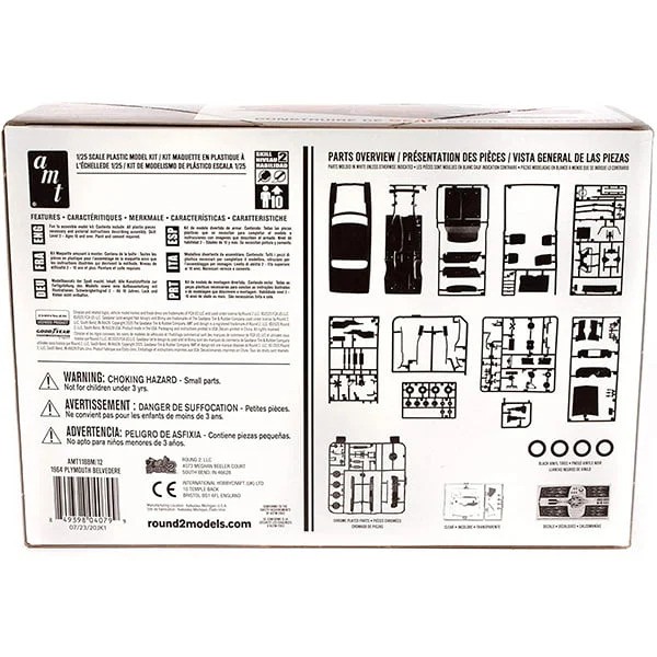 The AMT 1188 1/25 scale 1964 Belvedere plastic model kit is great project for any experienced modeler who is in to 60s Mopar. The 1964 Plymouth Belvedere kit features 2 complete engines, a 426 cu. In. V-8 and a Slant 6 engine. The kit also includes all new flame decals and vintage-style AMT packaging. Kit is molded in white with clear and chrome plated plastic and black vinyl tires.