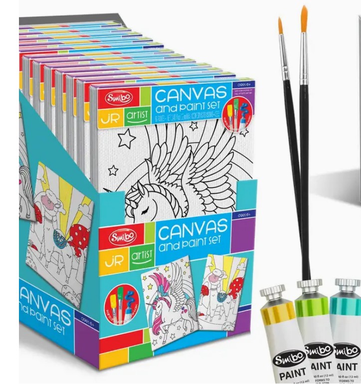 The Smibo Jr. Artist-Unicorn or Llama Canvas & Paint Set is a perfect art set for young artists. It provides everything needed to create a masterpiece. The canvas is ready to paint and the paints are easy to use. Let your child's creativity soar with the Smibo Jr. Artist-Unicorn or Llama Canvas & Paint Set.