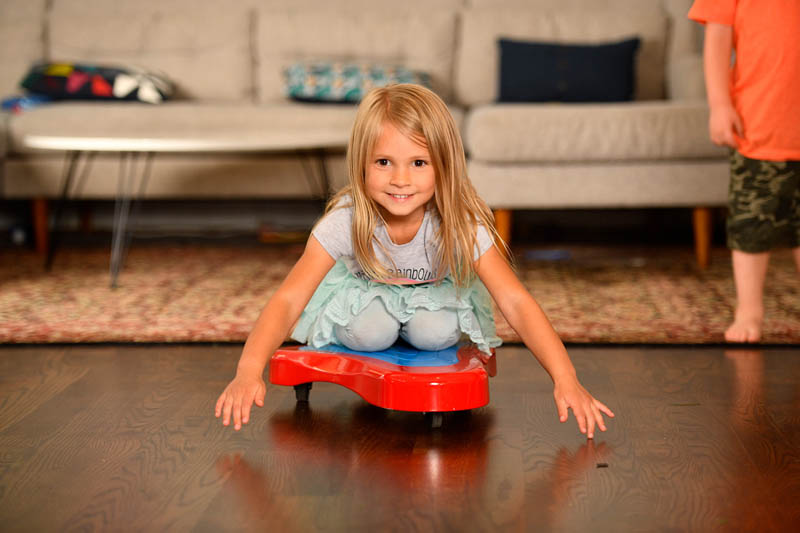 - Non slip silicone pad on top for safe scooting