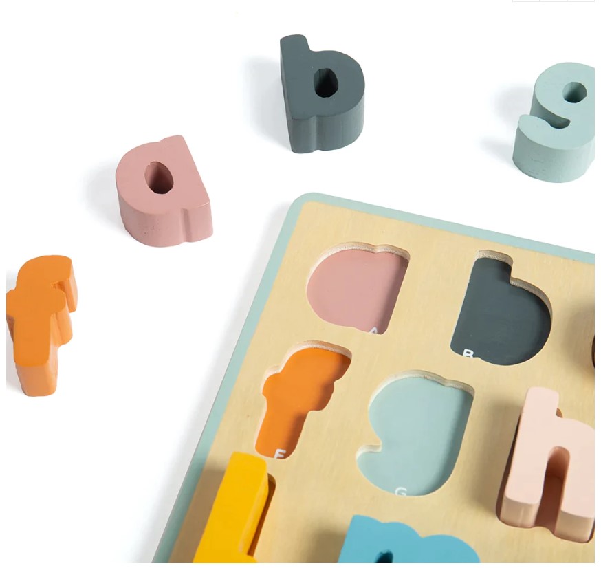 Learning about letters and words is as easy as ABC with this FSC Wooden Alphabet Puzzle. Each pastel coloured lowercase letter is colour-coordinated with its base slot to help develop recall and recognition skills. The chunky wooden puzzle pieces are perfectly sized for little hands.