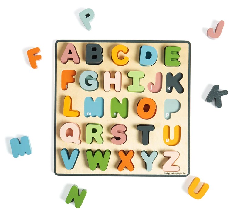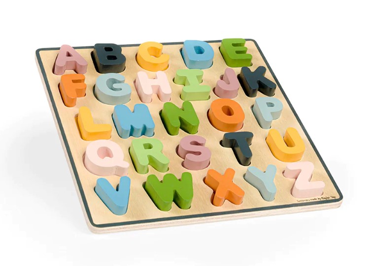 Learning about letters and words is as easy as ABC with the BIGJIGS FSC Wooden Alphabet Puzzle. Each pastel coloured uppercase letter is colour-coordinated with its base slot to help develop recall and recognition skills. The chunky wooden puzzle pieces are perfectly sized for little hands.