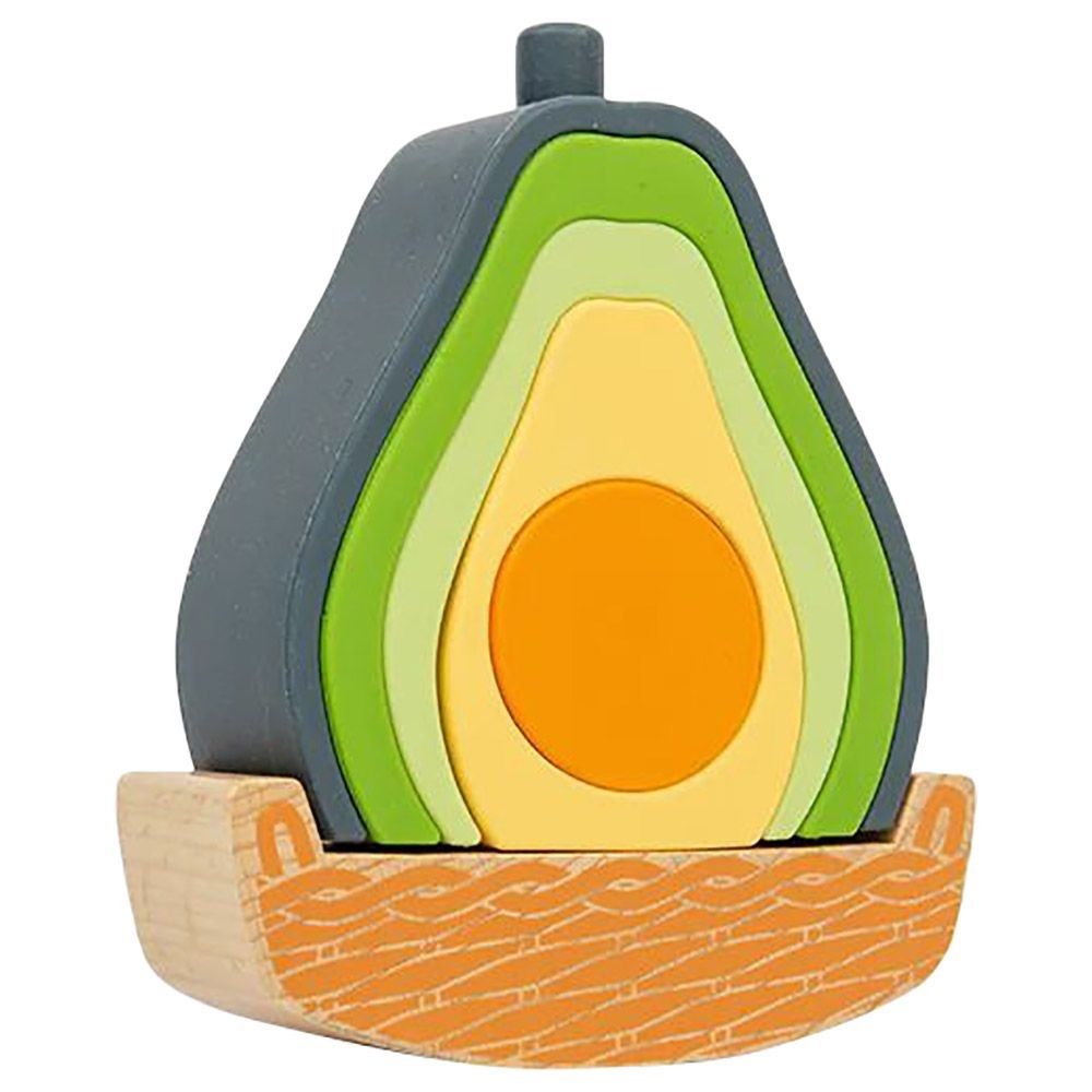 Our toy avocado is designed to teach youngsters grasp and release skills as they practise sorting and stacking the individual pieces. Made from sustainable silicone and FSC Certified wood.