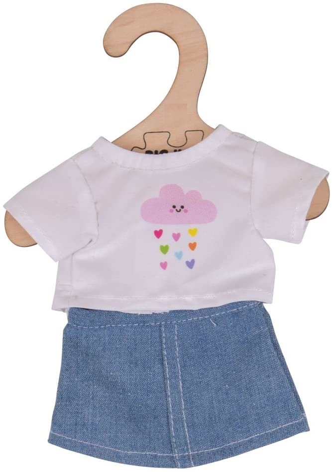 Budding fashionistas will love our collection of clothing for rag dolls, including this white t-shirt and denim skirt set to fit our Size Medium dolls. Whether your little one is taking their soft and cuddly best friend to a party or hosting a tea party of their own, dressing up for the occasion has never been easier. All of our dolls help to inspire creative role play sessions and develop a real sense of companionship.