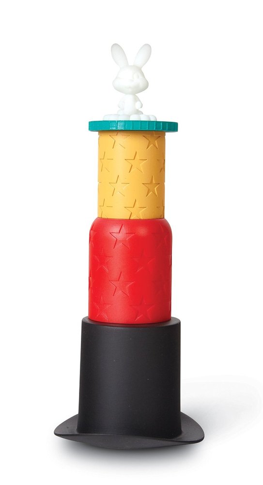 Put on your hat, break out your props, and hide your rabbits in this magical match up! when the challenge card is flipped over, players race to stack their objects in 1 single pile following 3 simple rules: objects printed in color must be visible on the stack, objects printed in grey must be hidden inside objects on the stack, and objects surrounded by stars must be kept empty. Do you have what it takes to master your magic in this grand stack ‘em up finale?