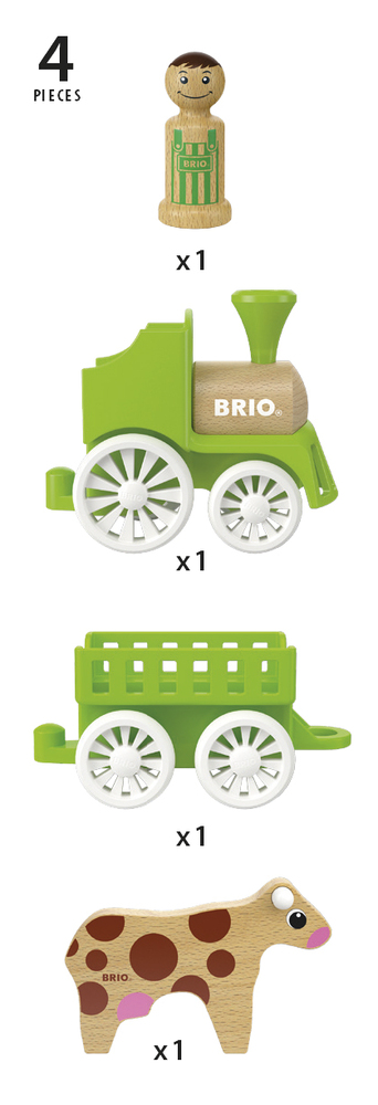 Take out your green train in the countryside and pick up a cow as a passenger in the wagon. Jump down from the train in your train driver overalls and help to unload the cow. Choo, Choo, time to leave to pick up another load.