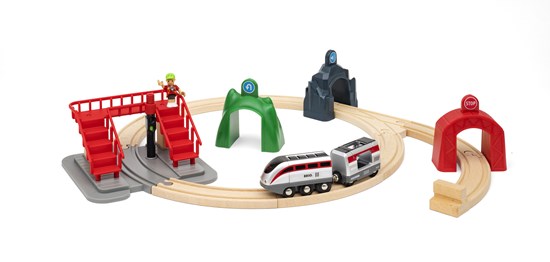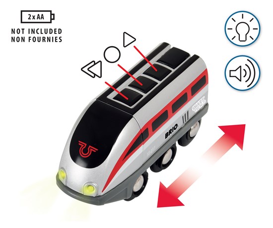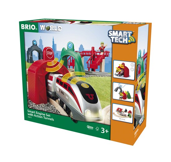 Where will the train go next? And what will it do? It’s all up to you. Arrange the tunnels and station and watch a new train adventure unfold. Thanks to interactive smart technology the train stops, honks the horn, backs up or blinks its lights. You make it happen!