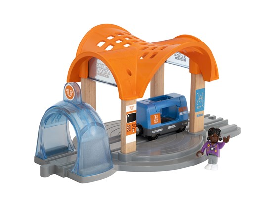 “All aboard!”. The trains are ready to depart from the Action Tunnel Station. When used with the Record & Play Engine (not included), the Station Action Tunnel instructs the train to slow down to a complete stop, flash its lights to signal that it’s arrived and play a station sound to create a playful ambience. Use the Smart Tech Sound app to change the station sound to recognisable stations from around the world – such as Berlin, London or Paris. Now the train has halted, help the passenger onboard the Travel Wagon and begin your BRIO World journey.