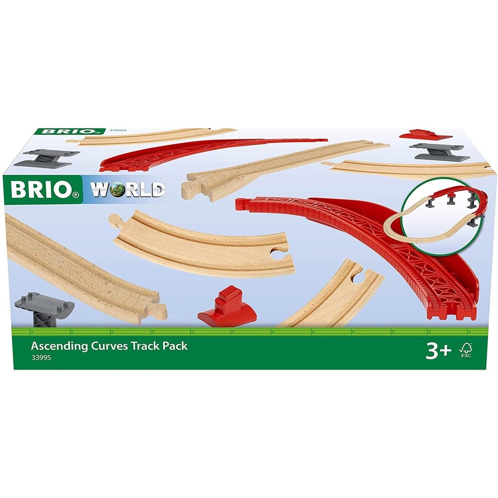 Take your BRIO World train sets to new heights with the 33995 Ascending Curves Track Pack. These twisty-turny, uppy-downy tracks bring speed, height and a splash of colour to your railway tracks. Use this train track set on its own as a closed-circuit track or build it into any existing BRIO World layout for added height, speed and fun.