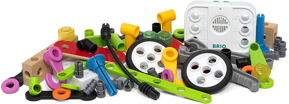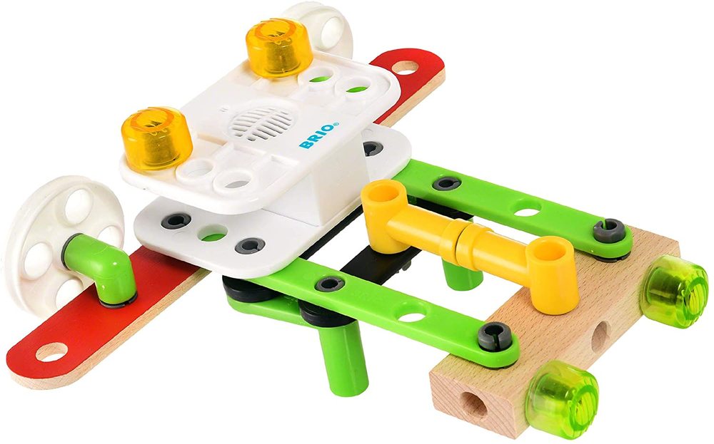 Bring your BRIO Builder creations to life with the BRIO record & play set - the perfect stem construction toy to challenge the imagination of young budding engineers. This open-ended toy construction set comes with play components, a battery-powered record & play unit and easy-to-use tools to help build your creations. The record and play unit takes the play to another level as you customise your toys with recorded speech and sounds. Bring your BRIO Builder creations to life with the record & play set. 68-Piece play set with easy to use tools and inspiration manual. Build cool new toys, record your own sounds, then listen to them as you play. Children play and learn using imagination and problem-solving skills to find construction solutions. All components in this set are compatible with all other sets in the BRIO Builder system.