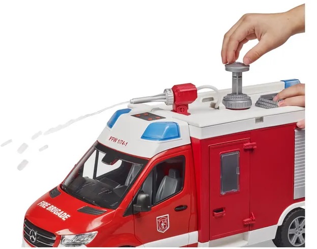 This popular Mercedes-Benz sprinter is also used by the fire brigade. With lights and sound, the vehicle roars to the scene and within seconds the water cannon is ready to extinguish any fire.