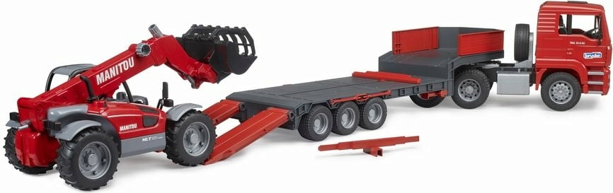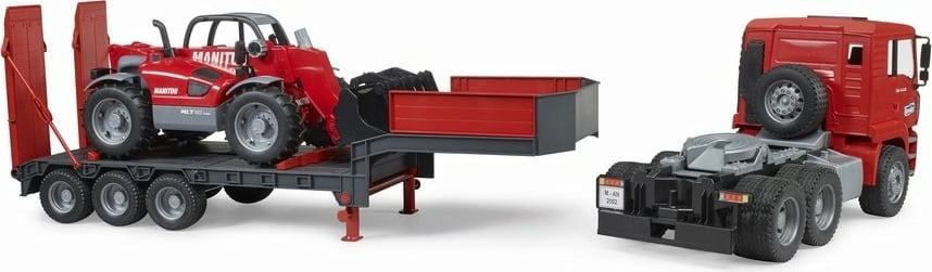 Bruder MAN TGA Truck with Low Loader Trailer and Manitou Telehandler.