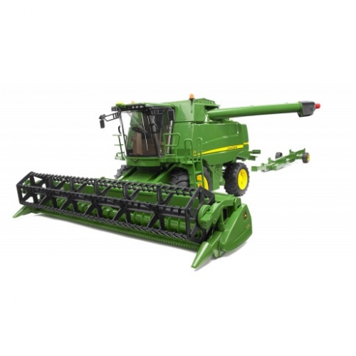 John Deere, the world's leading tractor manufacturer, also makes combine harvesters. The T series of these harvesters underwent new development and now includes as its top model in terms of performance and equipment the model T 670i. The same holds true for its entirely new BRUDER model which represents a milestone in the history of toys that meet the most challenging requirements. While the highly efficient technology incorporated into these impressive machines, for the most part, operates unseen by the casual observer, children are always fascinated with the spectacle created by combine harvesters when harvesting crops. With our new John Deere combine harvester BRUDER has managed to make this technology come to life and turn it into a tangible experience. Our little farmers will be thrilled to learn how easy this big harvester steers and how exciting it is to be able to drain the grain tank via the drain tube. Its other realistic details including the opening cabin door, numerous opening covers, a detachable cutting unit with pendulum suspension and level compensation – to name only a few – are sure to make this toy enormously fun to use.