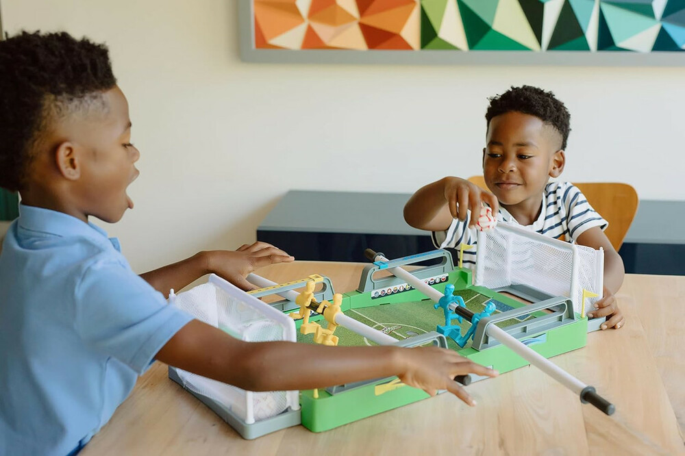 - Includes Flip Kick Soccer Table, 3 Soccer Balls, Assembly Instructions, Gameplay Instructions, Labels