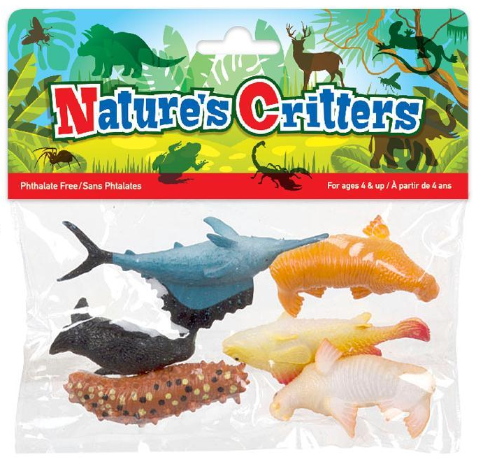 Each bag contains 3 mini PVC underwater critters.