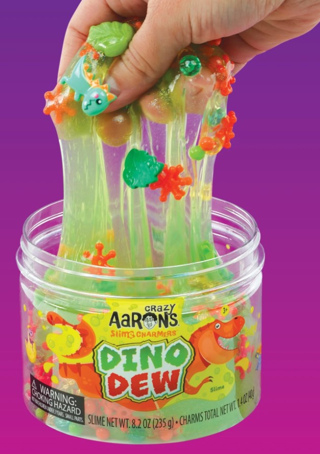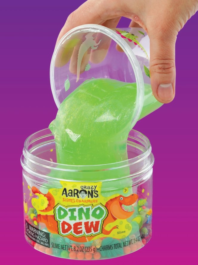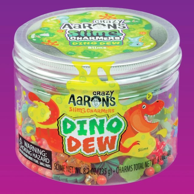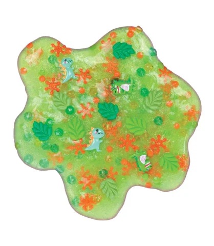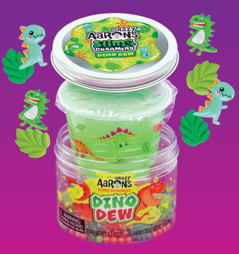 Experience Jurassic sized fun with Crazy Aaron's® Slime Charmers™ Dino Dew. This bright green slime and dinosaur themed charms and beads will have your create a world a million years in the making. Banana scented to heighten your senses. Mix, stretch and create with these dinosaur themed charms. So create your own world when dinosaurs ruled with Slime Charmers™ Dino Dew!