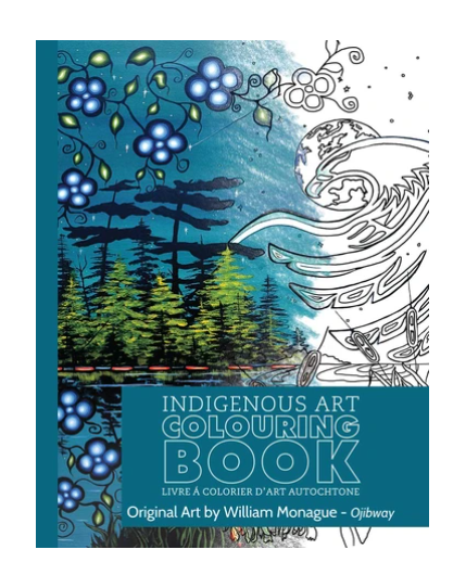 Indigenous art colouring book by artist William Monague. His cultural background is Ojibway. The artist is paid a royalty on every sale.