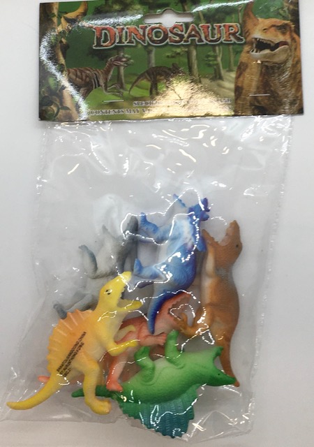 6 piece mini dino set in polybag.