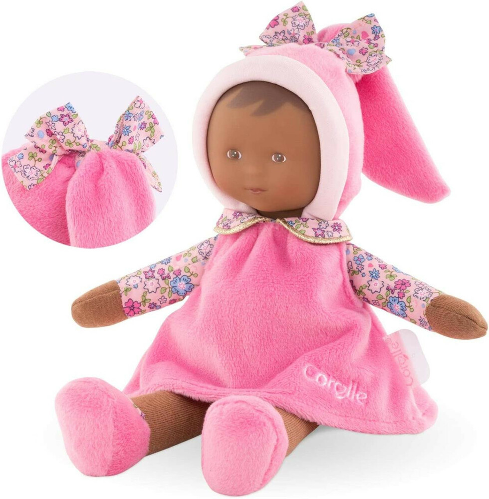 Perfect to go everywhere, miss pink cotton flower is the small doll that baby will never leave behind. Miss floral sweet dreams has a pretty, realistic face, is perfectly sized (9.5 inches) for tiny hands. Made of ultra-soft fabric making her very cuddly and scented with vanilla - a Corolle signature. Has a sewn-in label to write baby's first name or a phone number in case the doll is lost.