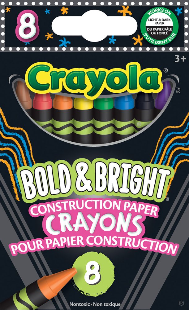 Crayola Bold & Bright Construction Paper Crayons are vivid crayon colours specially formulated to “pop” on dark paper!