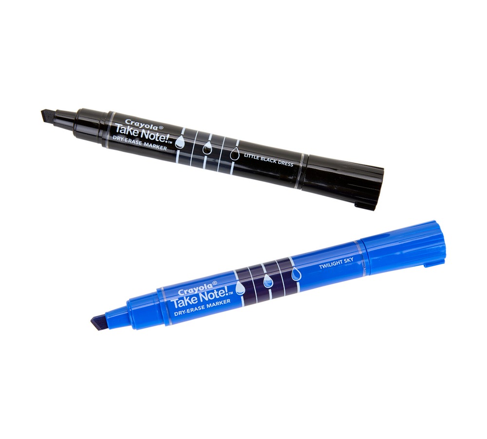 Crayola Take Note Dry Erase Markers are quick to dry but easy to erase! Vibrant colors are great for bold messages on most white boards. Each Dry Erase Marker has a chisel tip that is perfect for thick or thin lines and features an ink level indicator so you always know when it’s time to restock. The low odor Dry Erase Markers are ideal for classrooms, offices, and meeting rooms.