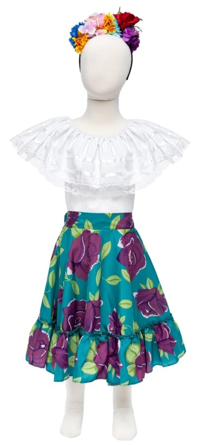 Unleash your creativity with our Frida the Artist set. With a flouncy floral skirt, crisp white ruffled off-the-shoulder blouse, and vibrant flowery headpiece, this outfit is sure to inspire a masterpiece!