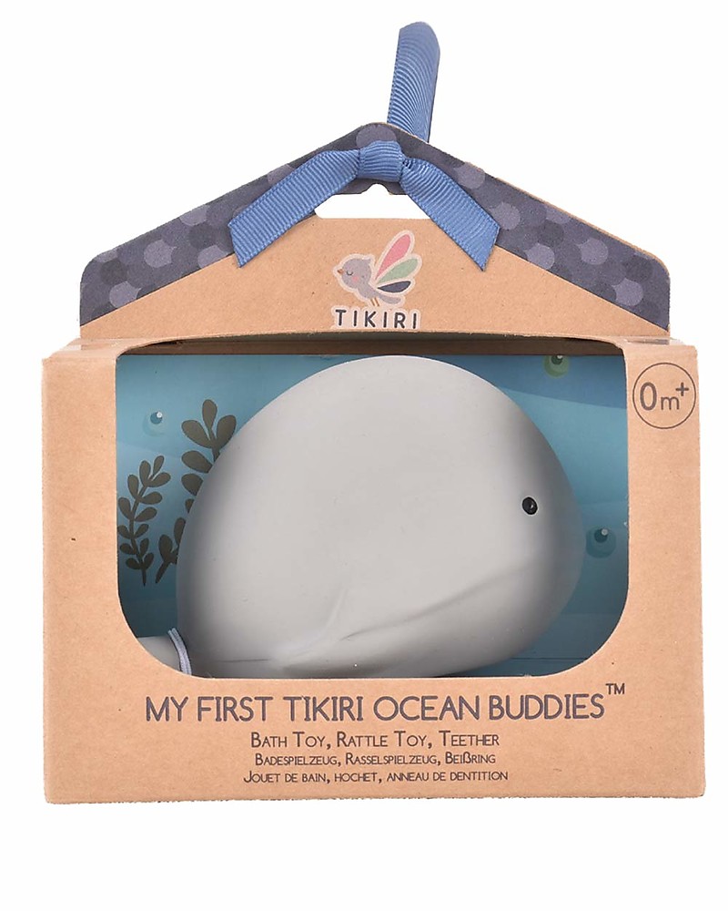 Tikiri's whale baby toy is ideal for keeping your baby entertained for bath time. The baby rattle inside the whale toy gives a soft sound and is great for everyday play and teething. Sound toys, like rattles provide stimulation to babies as they discover their senses. By creating sound, your child starts to learn fundamental lessons in cause and effect relationships. These ocean buddies make a fantastic addition to bath time or water play and are fully sealed for hygiene. Our whale baby rattle is a handmade, sustainable natural rubber baby toy and is 100% plastic free. The whale baby toy is also designed to be easily gripped by tiny hands.