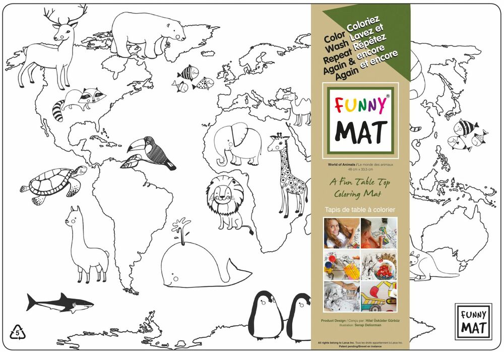 Funny Mat is a table top cover that can be used in many ways. It can be used for craft projects such as drawing or colouring. It can also be used as a protective mat for painting, plasticine and play dough or as a place mat or as a study mat. The designs on Funny Mat can be coloured with water-based (non permanent) felt-tip markers, including PilotColorEno Pencils, PilotFrixionColor Markers, or Crayola markers. The colours will wash off when the mat is placed under running water. Use a sponge or wet paper towel as needed. Other materials may be used for permanent result. Funny Mat is made from polypropylene and is recyclable and non-toxic.