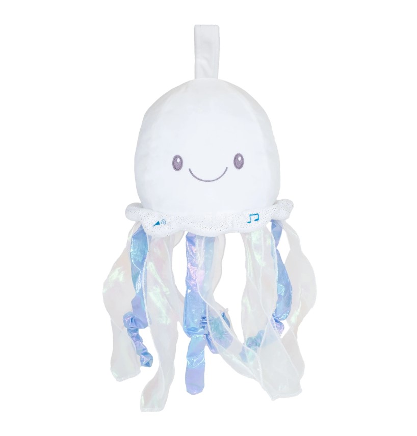 Enter a wondrous fanta-sea with Glimmer! This dazzling jellyfish can glow in various soft, illuminating colors while playing a melody of “Ocean Wonder” (with adjustable volume control!)