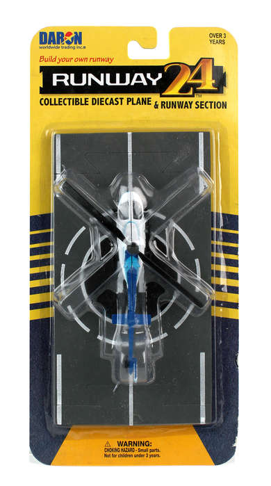 Runway24 by Daron (with runway section) are detailed, die-cast metal airplane toys that can be used together. Commercial, military and general aviation-style aircraft with real markings. Each die-cast aircraft comes with a flexible rubber runway section. These sections can be used together with other runway24 sets to create your own airport. Intersections, straight sections, and curved pieces available separately.