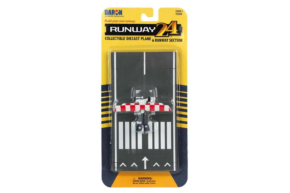 Made from die-cast metal with rolling wheels, Runway24 planes are the perfect size for play. Each Runway24 toy includes a runway section to connect with other Runway24 planes. Build your own airport. Cross sections, curved sections and straight runway sections sold separately in packs. Our Runway24 planes have accurate detail.