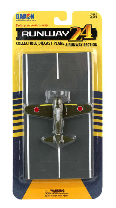 Runway24 by Daron (with runway section) are detailed, die-cast metal airplane toys that can be used together. Commercial, military and general aviation-style aircraft with real markings. Each die-cast aircraft comes with a flexible rubber runway section. These sections can be used together with other runway24 sets to create your own airport. Intersections, straight sections, and curved pieces available separately.