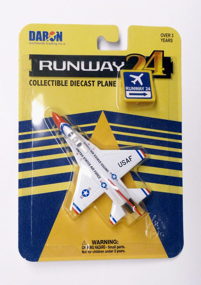 Runway24 by Daron are detailed, die-cast metal airplane toys that can be used together. Commerical, military and general aviation-style aircraft with real markings.