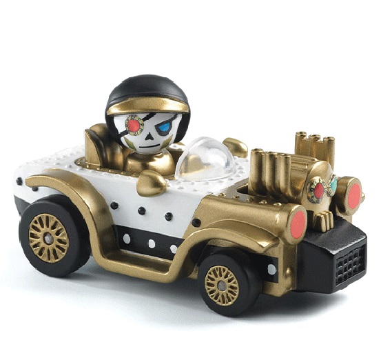 The Motor Skull car for Crazy Motors is so cool it's scary! This unique car has an elegant vintage design with cool skull and bone details, and a matching driver.