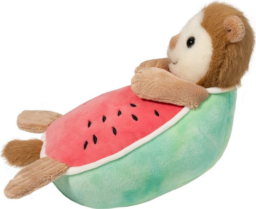 Everybody’s heard of watermelons but you might not have heard of the less common Otter Melon! This whimsical Foodie Macaroon stuffed animal features a playful combination of cuddly marine mammal and sweet, summer snack! Our Otter Melon is posed on his back and resting on the green rind of the melon. Cheery red fruit flecked with black watermelon seeds make up our adorable Sea Otter’s belly as he peers out with an endearing expression. Fantastically silky polyester fill and velvety textured plush materials ensure this lighthearted personality to be a squeezably soft companion. Tote this extraordinary plush Otter Melon along to your next summer party and he’s sure to be a hit!