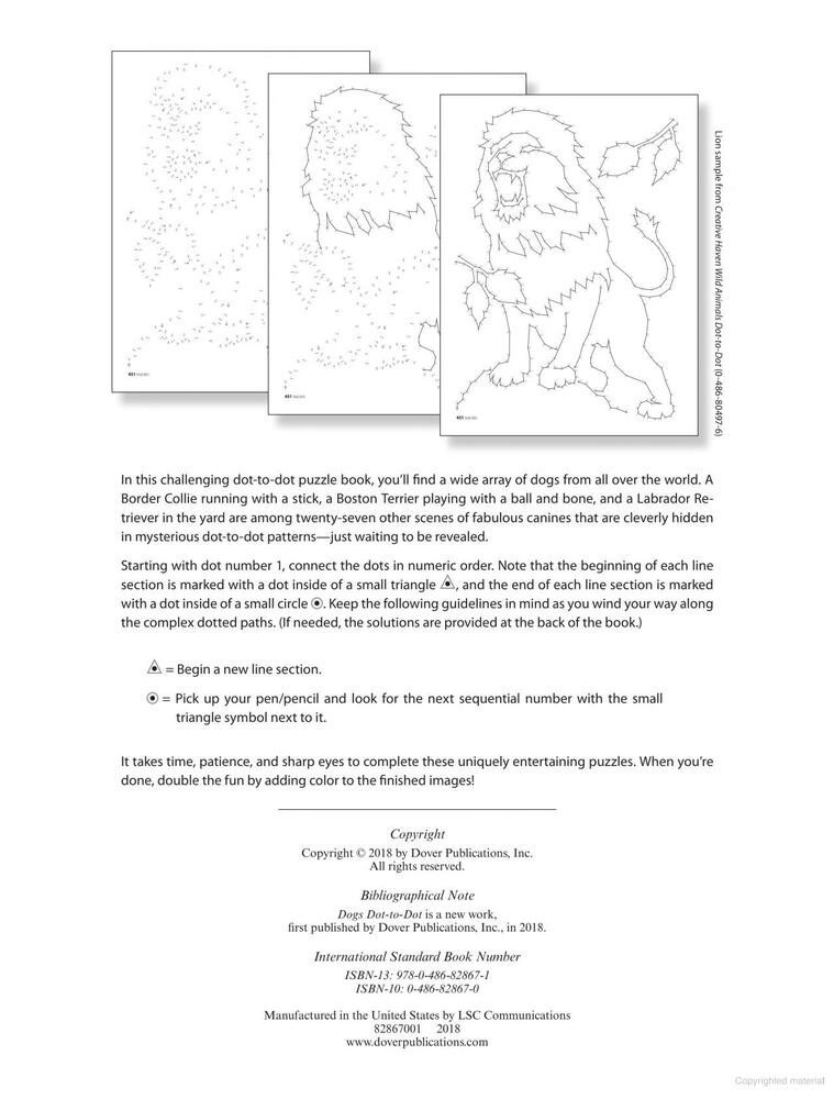 Pages are perforated and printed on one side only for easy removal and display. Specially designed for experienced colorists, Dogs Dot-to-Dot and other Creative Haven® adult coloring books offer an escape to a world of inspiration and artistic fulfillment. Each title is also an effective and fun-filled way to relax and reduce stress.