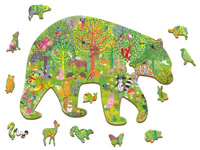 Special-shaped wooden puzzle illustrated with a colorful forest landscape. Among the pieces that make up the puzzle, 12 preformed animals must be positioned. The game stimulates logic, visual-spatial skills and fine dexterity.