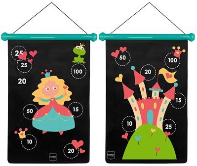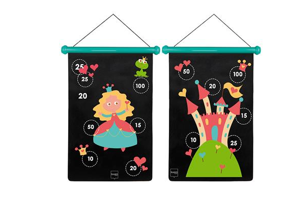 This wonderful magnetic darts game is unique in its concept and design. The magnetic canvas can be hung up in 2 different ways. The darts are made out of plastic with a metal tip and are not sharp at the ends, so the game is completely safe to play for children. The canvas and the 6 darts come nicely packaged in a tube of sturdy cardboard, so they can be easily stored. Darts is always a fun game for young and old. Your child will certainly never get tired of playing!