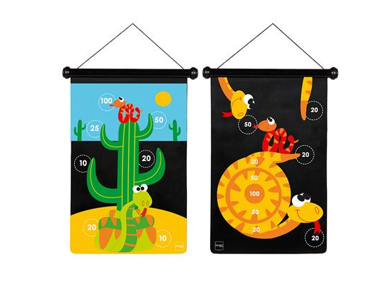 This wonderful magnetic darts game is unique in its concept and design. The magnetic canvas can be hung up in 2 different ways. The darts are made out of plastic with a metal tip and are not sharp at the ends, so the game is completely safe to play for children. The canvas and the 6 darts come nicely packaged in a tube of sturdy cardboard, so they can be easily stored. Darts is always a fun game for young and old. Your child will certainly never get tired of playing!