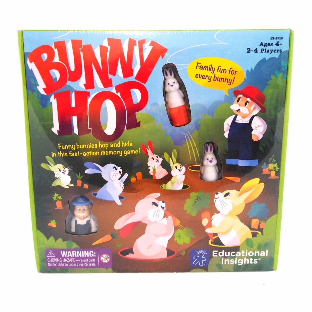 How to Play 1. Players take turns rolling the color die, pressing a matching colored bunny, and pressing the farmer with the matching colored hat. 2. If their bunny hops out of the patch, the player keeps the bunny. 3. The first player to collect 1 of each colored bunnies wins!
