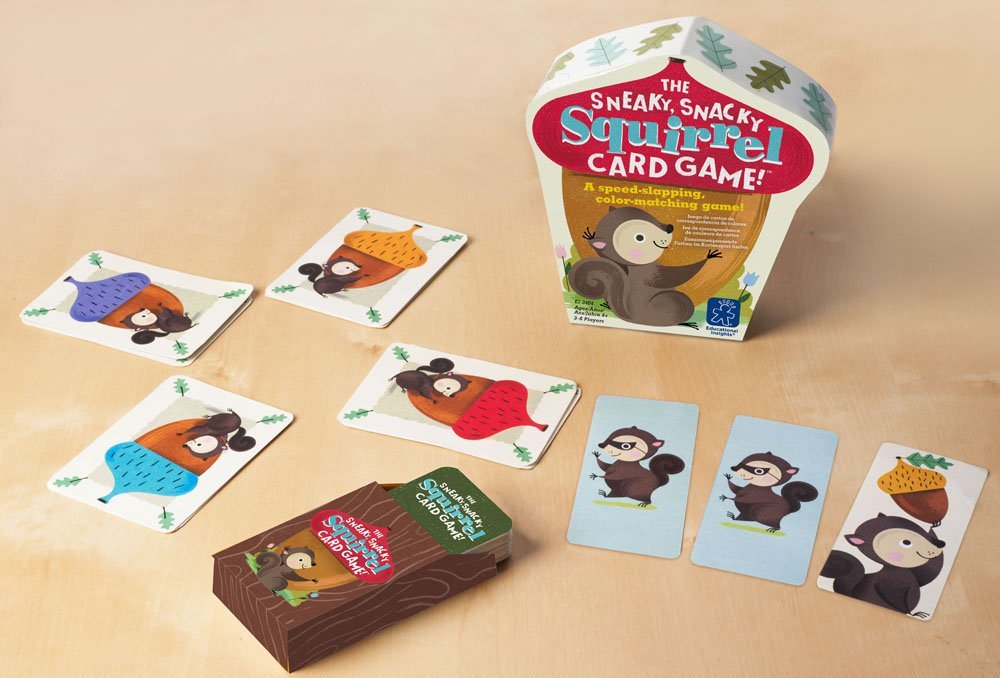Your furry forest friends are hungry and they need your help! Race the other players to squirrel away the most acorn cards and win this nutty, fast-action, color-matching preschool game.