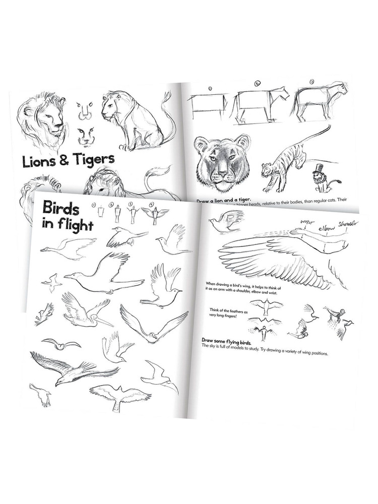 Learn to draw animals with Kevin Hawkes! This book will teach basic skills for drawing animals in motion, profile, body features and in scale.
