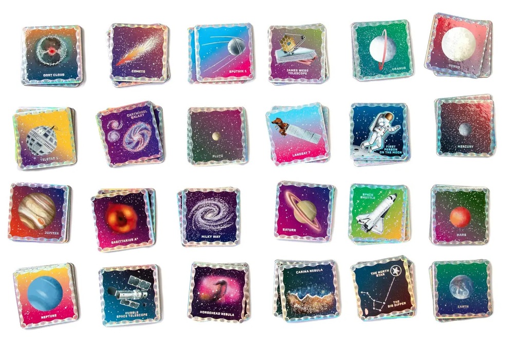 - 24 pairs of 2.25” x 2.25” illustrated tiles