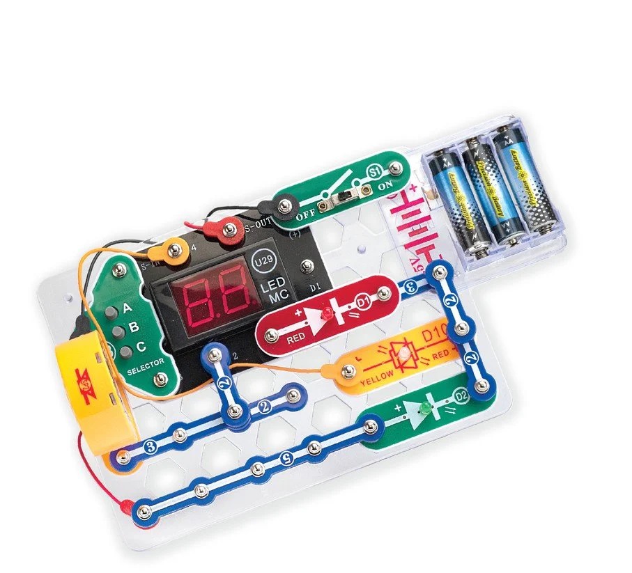 - Make dozens of electronic gadgets that power light and sound, all from one box