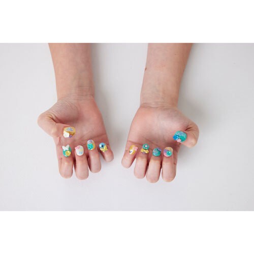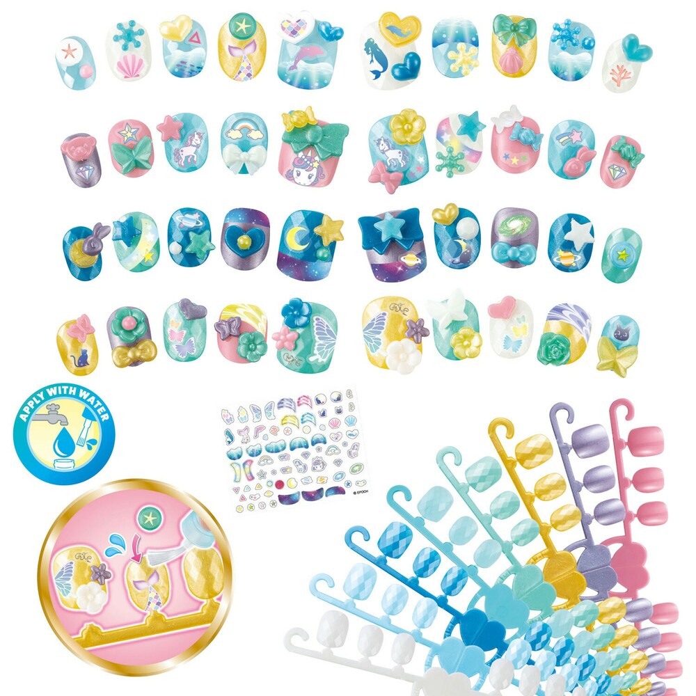 This nail refill kit includes materials for over 40 unique nail designs, featuring stars, unicorns, ribbons, and more. Just use tap water to decorate and wear the shiny, glittery nails in just three minutes. They are reusable and can be easily removed.