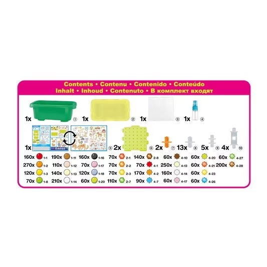 This complete arts and crafts bead set includes over 3500 beads in 35 colors, creation displays, design pegs, layout tray, sprayer, template sheet with instructions