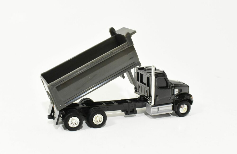 Western Star 1:64 scale double axle dump truck features die cast and plastic construction, The dump box lifts and lowers.