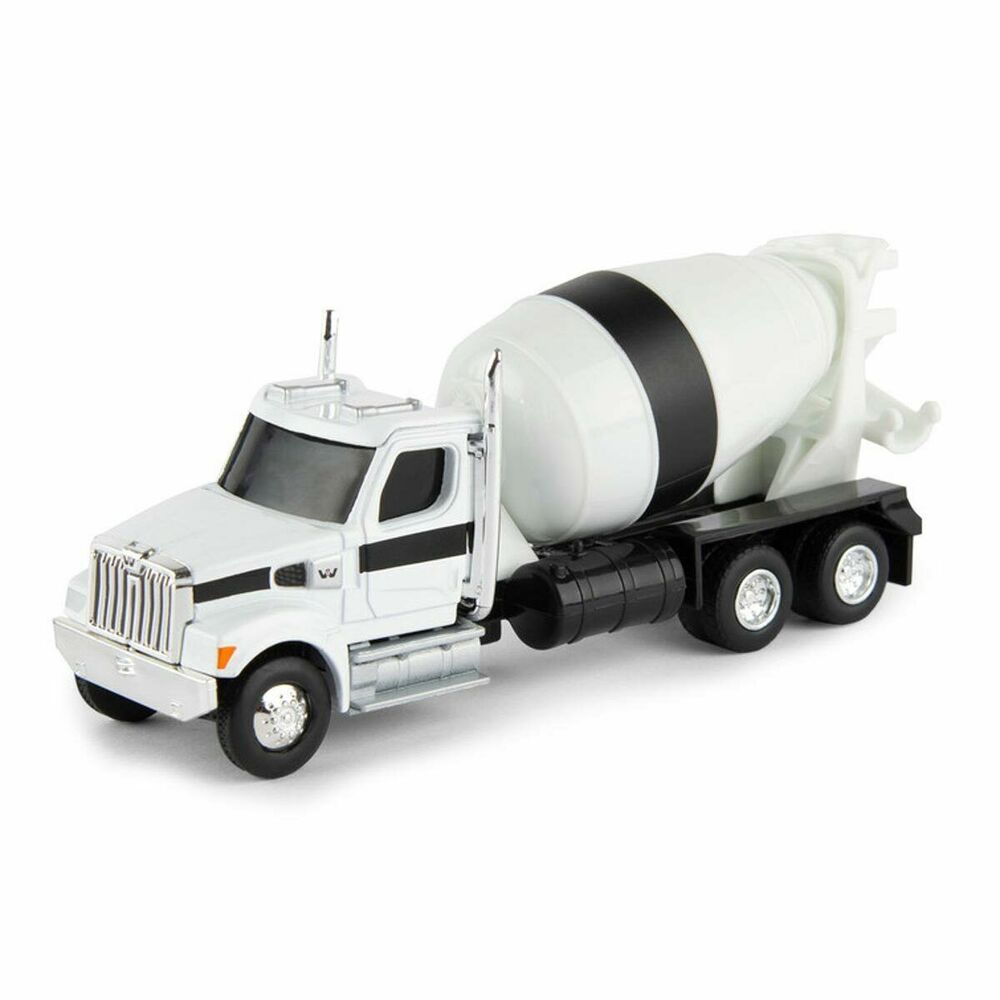 Made by ERTL, the leading in farm toys for over 60 years. This 1/64 scale model of a Western Star Cement Mixer is die-cast with some plastic parts. The truck and mixer are white with black stripe through them.