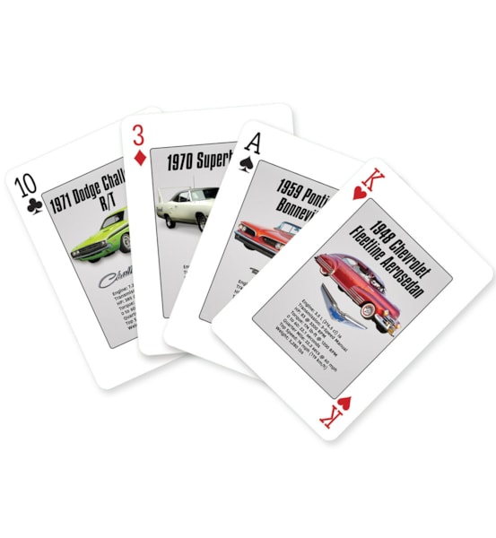 erfect finish and feel of a casino deck of cards. Collectible card series featuring different muscle cars across generations. The 1968 Ford Mustang GT Cobra Jet, the 1949 Oldsmobile Rocket 88, the 1970 Chevelle SS 454 and much more.